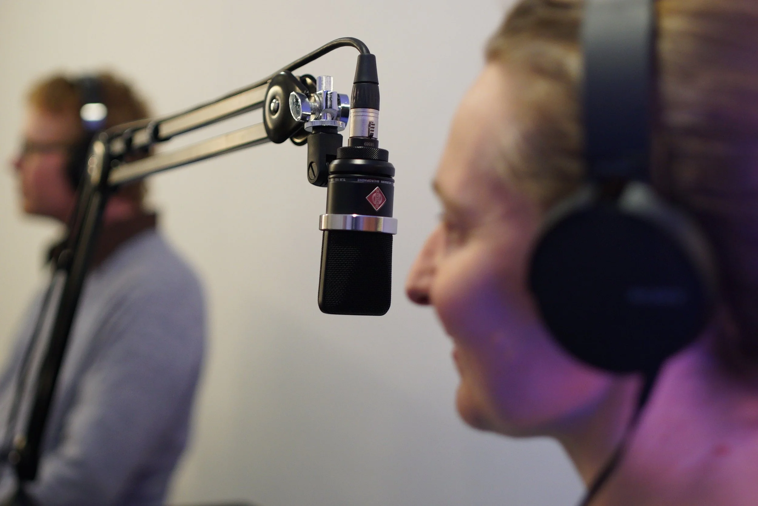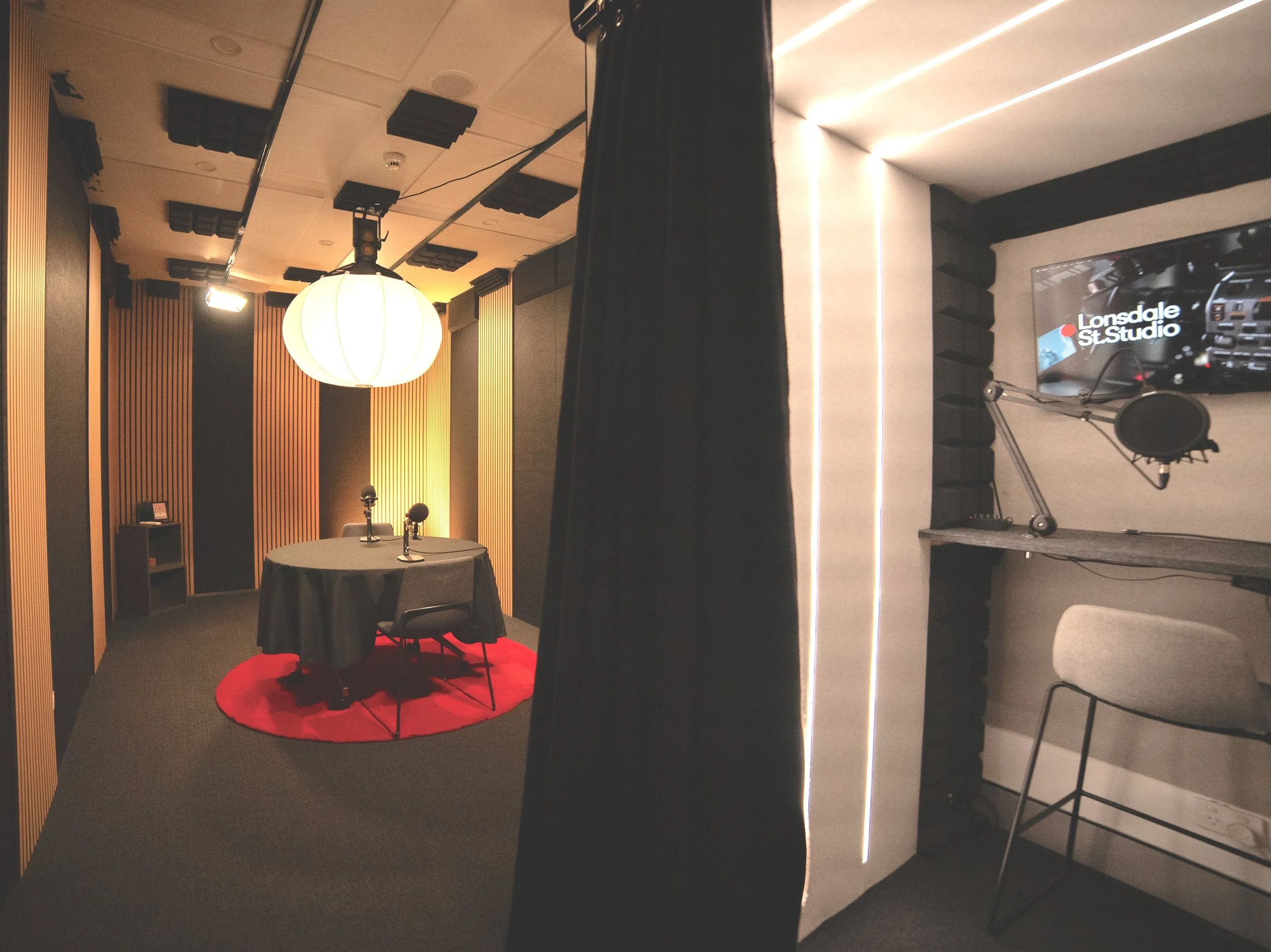 Level up your podcast with video! Our basic pack gives you a 2 camera switched feed, plus audio mix so your have Spotify and YouTube sorted in one session. Our studio team works with you to add the right colour lights and props.